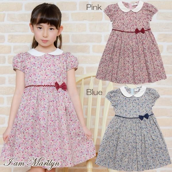 子供服 女の子 ワンピース ジャンパースカート 半袖 お出かけ着 普段着 発表会 食事会 日本製綿100 花柄リボン 襟付き アイアムマリリン Iammarilyn Moononnon 通販 Yahoo ショッピング